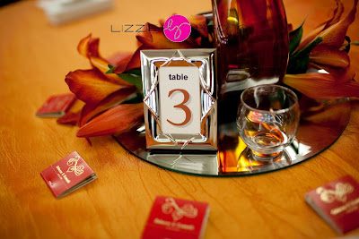 The theme of this beautiful wedding was “fire” – their fiery love for each other was apparent, and not just in the matchbooks and glass flame sculptures on each table at the reception.